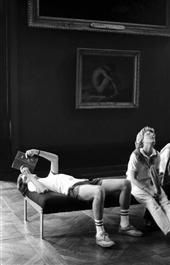 France. Paris. Young students relax in the Louvre Museum in central Paris. (Reading)