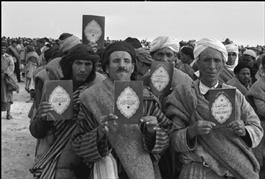 Some of the 350.000volunteers in King HASSAN II' s march, at the camp of Tarfaya.