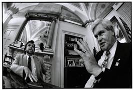 Washington, D. C. 1995. Republican Speaker of the House of Representatives Newt GINGRICH, interviewed by John Perry Barlow. ©Bruce Davidson/Magnum Photos
