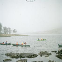 GB. Wales. Plas y Brenin National Mountain Centre. Children from London enjoying outdoor activities. Canoeing in the rain. 1999.