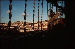 The Sao Justa elevator designed, by Eiffel, view on the Alfama....