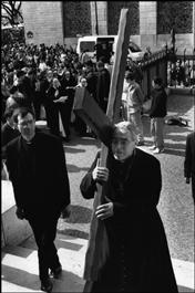 FRANCE. Paris. 18th arrondissement. 1999. Cardinal LUSTIGER carries the easter cross to Sacré Coeur basilica during the Easter procession.