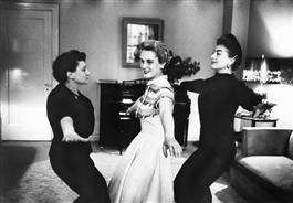 USA. NYC. 1956. Joan and Christina CRAWFORD during a workout with Susan STRASBERG.