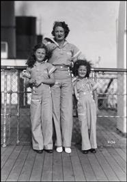 Mrs Dorothy Silverstone with her daughters Marilyn (8) and Barbara on board the Queen Mary during a transatlantic crossing in 1936, the little girls were often dressed identically.