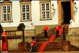 North of Copenhagen,Fredensborg Royal Palace.Red Carpet for Royal Family visit.