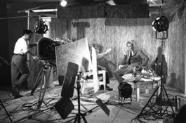 FRANCE. Val-de-Marne. St Maur. 1958. French movie director Jacques TATI shooting his film "Mon Oncle" (My Uncle).