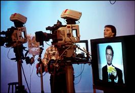 In the studios of France 3 TV. Cameramen adjustments prior to a live program.