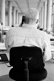 GB. London. 1997. Sir Norman FOSTER in his main office solving problems on a non stop basis.