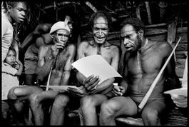 INDONESIA. Irian Jana. Members of the Dani Tribe look at pictures from 1959.