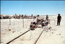 EGYPTIAN OCCUPIED TERRITORIES. Sinaï. 1967. Israeli soldier guards Egyptian POW's.