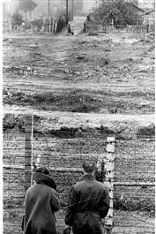 GERMANY, BERLIN, 1961. West German and East German couples watch each other across barbed wire dividing the city in the first days of erecting the wall.