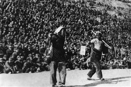 Musical drama, "Brother and Sister reclaiming the wasteland" performed in Yan'an. A play intended to mobilize cultivation of the Shaanxi-Ganxu-Ningxia provinces of the Northwest border region, then the poorest area of China.