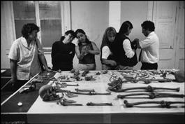 Nothern Chile. Town of Copiapo. 2000: Isabel REVECO, anthropologist of Legal Medical Institute shows remains of presumed "disappeared" under the Pinochet regime, which she tries to assemble for identification.