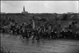 Schoolchildren leaving their secondary school, which survived, on the edge of the completely demolished Ghetto.