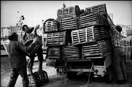 FRANCE. Charente-Maritime. La Rochelle. 1972. Unloading of lobster-pots in the city of La Rochelle.