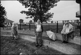 GREECE. Macedonia region. Believers attending a religious local festival under a sudden downpour. 1995.