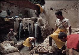 MOROCCO. Fez. Quarter of Derb Bouhajj. Tanners washing skins. 1993.