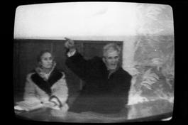 FRANCE. Nicolae CEAUSESCU and his wife Elena on T.V during a trial by a military tribunal. 1989.