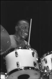 FRANCE. Pays-de-la-Loire region. Sarthe department. Le Mans. Europa Jazz Festival. Palais des Congrès et de la Culture, place Stalingrad. US jazz musician Elvin JONES (drums). Concert. ELVIN JONES JAZZ MACHINE QUINTET "SPECIAL PROJECT". Thursday, April 30th 1987.