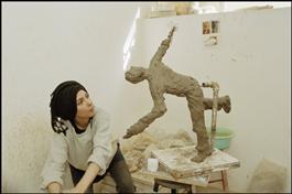 IRAN. Tehran. Modern sculptor Bita FAYYAZI works in her studio, on a series entitled "Falling People." 2000.