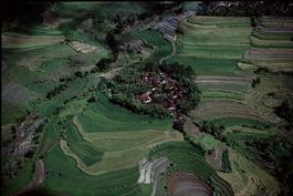 INDONESIA. Aerial view of village and rice paddies near Jogyakarta, Java. 1993.