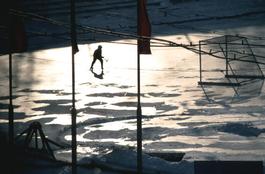 USSR. Ulyanovsk. The birth place of Lenin. A Russian economic winter. Early morning ice hockey practice in