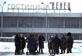USSR. Ulyanovsk. The birth place of Lenin. A Russian economic winter. Women street cleaners clear snow off