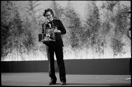 Wim WENDERS, cinéaste allemand, recevant le Lion d'Or pour son film "L'Etat des choses" (Der Stand der Dinge).