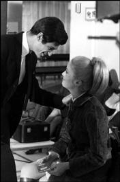 French actors Sami FREY and Catherine DENEUVE on the "Manon 70" film set.