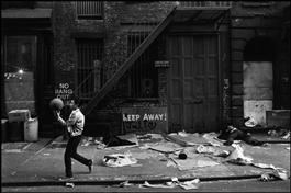 USA. New York City. Manhattan. The Bowery. Boy with a basketball...