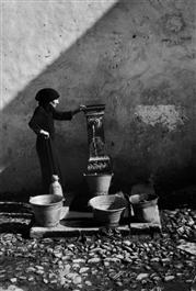 Italy, Sicily, Bagheria:Old woman at the fountain.