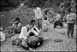 FRANCE. Provence-Alpes-Côtes d'Azur region. Var departement. Ollioules. Châteauvallon Festival. Camp set up at the end of the P3 parking. On the left, in the foreground, US jazz musician Don CHERRY (trumpet, cor, percussions, flute...) and his band. DON CHERRY'S NEW RESEARCHES. Wednesday, August 23rd 1972.Â