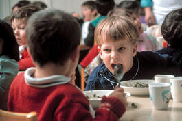 FRANCE. Paris 75010. Lunchtime at a private (Catholic) nursery school. 1992.