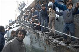 Italia, Brindisi: Albanian refugees at the port. (c) Ferdinando Scianna/Magnum Photos