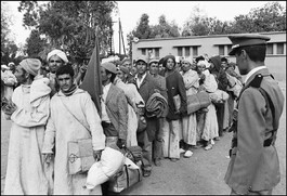 MOROCCO. Following the World Court at the Hague' s "consultive opinion" that the Spanish Sahara should be free of Spanish colonial rule, King HASSAN II of Morocco announced the organization of a peace march of 350.000 volunteers (the "Green March"), of which 10% to be women, to the Spanish Sahara in order to reclaim their rights to sovereignty over the territory. The King HASSAN II provided transport, food and shelter for the march. October 1975.