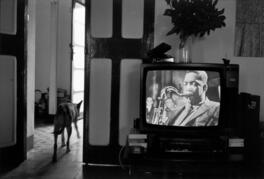 EQUATORIAL GUINEA. Bioko island. Malabo. At Guy MAURETTE's home, director of the ICEF Institut Culturel d'Expression Française. Appearing on the television the American jazz musician John COLTRANE ( saxophones tenor & soprano). Tuesday 13th March, 1990. Around 2.00pm.