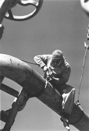 Arab welders work on the oil pipelines leading to the gas seperator.