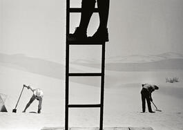 USA. Arizona. Cleaning up the desert during the shooting of The Fight of the Phoenix. 1965.