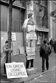 FRANCE. Boulogne-Billancourt. A dummy in the form of a factory boss being hung outside the Renault car factory, which is on strike. 17th May 68.