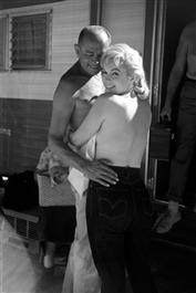USA. Nevada. Reno. On location during the filming of The Misfits. Marilyn being held by an unidentified member of the crew. 1960.