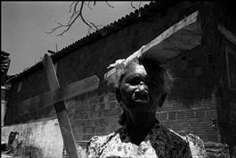 BRAZIL. Ceara state. Juazeiro do Norte. 1996. A Sertaneja, peasant from the Nordeste, carries a plank on her head during the yearly pilgrimage for Padre Cicero.