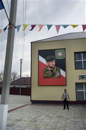 CHECHNYA. 2009. VEDENO, native village of Shamil Bassaiev, Kadyrov poster.