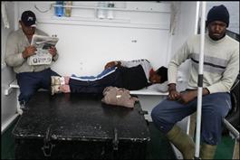 SPAIN. Galicia. Bonito tuna fishing on the Pachilan. 2008. Much time is spent waiting for the boad to find rich fishing grounds. The crew is made up of Spaniards and West Africans who get along very well.