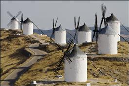 SPAIN. La Mancha. 2008. Windmills, still in working condition,...