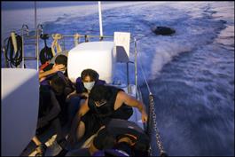 Greek coast guards patrol the Aegean sea where illegal immigrants try to cross the border coming from Kusadasi on the Turkish side.