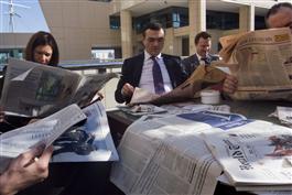 SPAIN. Barcelona. Gerogian ministers and presidential advisers having breakfast. February 2009.