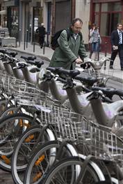 FRANCE. Paris. 2009. 75001. Rue Jean-Jacques Rousseau. Renting a Vélib bicycle.