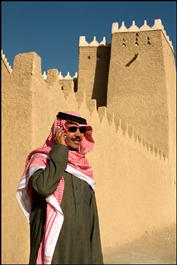 SAUDI ARABIA. Riyadh. In the old city, partly restaured, a man on a cellphone.
