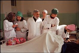 AFGHANISTAN. Kabul region. City of Kabul. December 2001. Female and male doctors making morning round at the Rabia Balkhi hospital.
