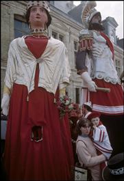 Nord-Pas-de-Calais region. Nord department. Town of Cassel. The Scandinavian warrior Reuze Papa with his wife during the local carnival which takes place every year on Easter Monday .